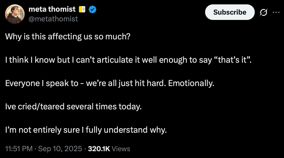 A few days ago, I shared my own perspective about why Charlie’s loss resonates so deeply. I want to expand on that X post here.